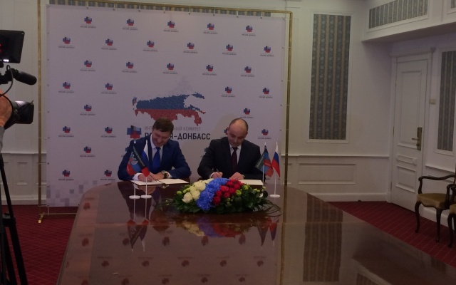В начале заседания состоялась церемония подписания соглашений об установлении побратимских отношений между городами и регионами России и Донбасса.
