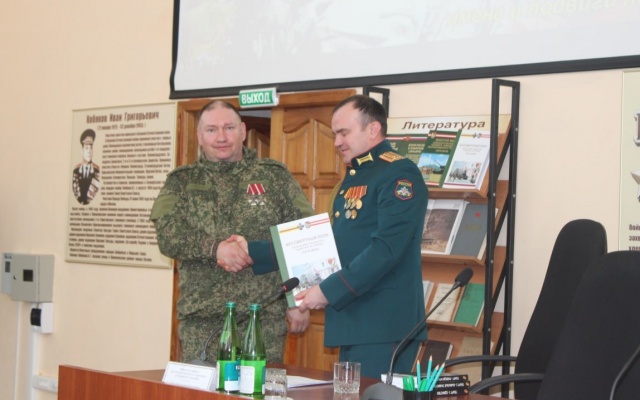 На память "Дядька" подарил училищу флаг и шевроны батальона БАРС 3 "Родина".