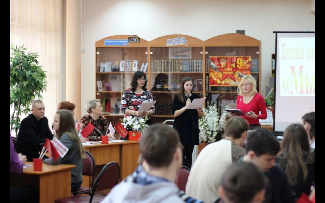 22 марта в библиотеке имени известной русской поэтессы, прозаика и общественного деятеля Людмилы Татьяничевой состоялась интеллектуальная игра-викторина – битва победителей "Мы – правнуки Победы!", в которой приняли участие школьники Курчатовского района г.Челябинска. Дети получили уникальную возможность проверить свои знания и почерпнуть новые сведения о грозном событии в истории русского народа – Великой Отечественной войне.