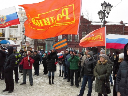 21 февраля у памятника "Добровольцам-танкистам" в Челябинске региональное отделение партии "РОДИНА" совместно с Народно-Освободительным Движением в Челябинской области провели митинг в поддержку Президента РФ.