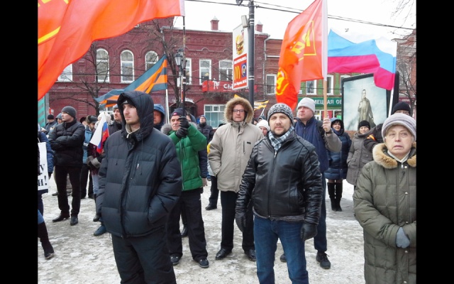Возле знаменательного для каждого южноуральца месте, откуда в 1943 году из Челябинска на фронт была отправлена добровольческая танковая бригада, собрались неравнодушные люди по случаю годовщины трагических событий в Киеве. "Мы против оранжевых революций!", "Майдан – фашизм XXI века!", "Им нужны великие потрясения, нам нужна Великая Россия!", "В России Майдана не будет!" - основные лозунги состоявшегося митинга.