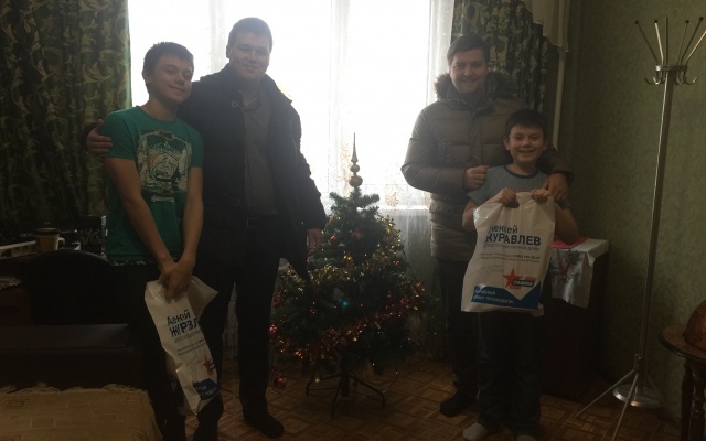 Артем Чекмарев, Иван Каменев и Полина Сысоева встретились с ребятами, вручили каждому сладкие подарки и поздравили с наступающими праздниками от депутата Алексея Журавлева.