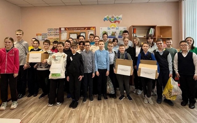 Ученики средней школы № 143 г. Новосибирска передали в Клуб избирателей депутата Законодательного Собрания от партии "РОДИНА" Вячеслава Илюхина гуманитарную помощь, которую они собрали для наших воинов, выполняющих задачи специальной военной операции.