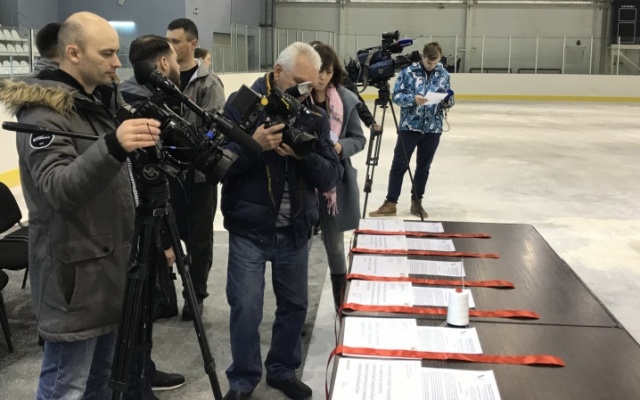 Здесь, в стенах ныне заброшенного тренировочного ледового комплекса "МТЛ Арена 2", сопредседатель регионального Штаба ОНФ, координатор проекта Народного фронта "За честные закупки" в Самарской области, член Политсовета партии "РОДИНА" Вадим Нуждин торжественно вручил сшитую белыми нитками красную ленточку представителю подрядной организации ЗАО "Волгатрансстрой-9".